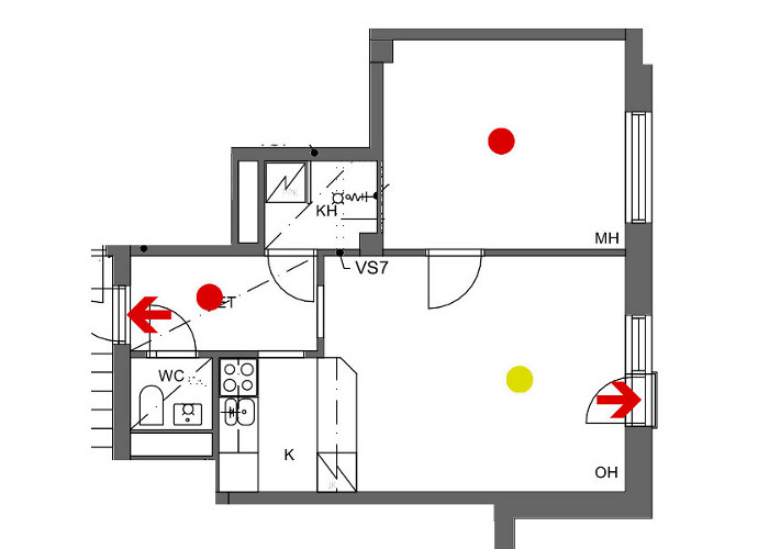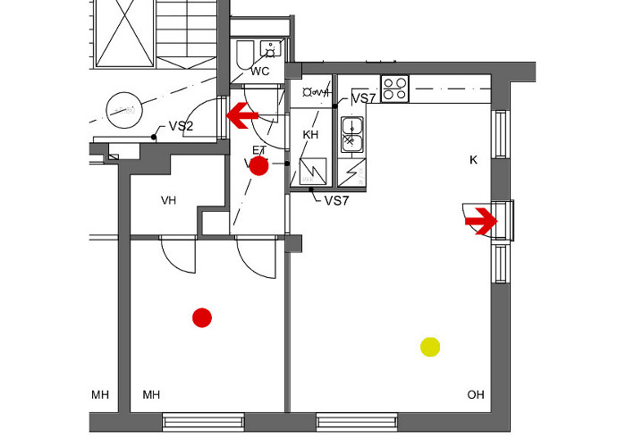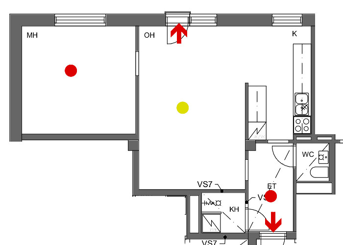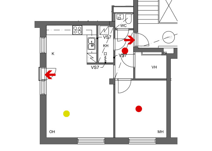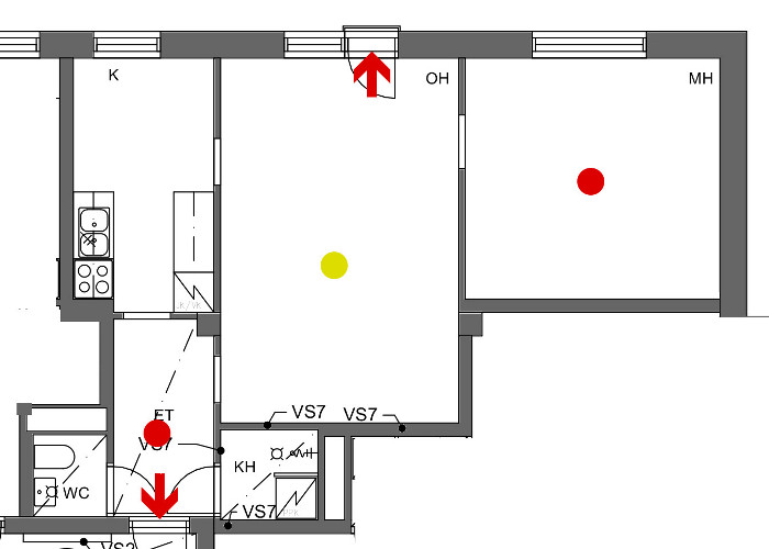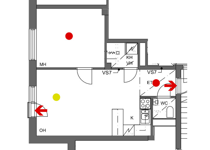 1.1.2026 hälyttimet siirtyivät taloyhtiön vastuulle. Tähän liittyen tammikuussa tehtiin kysely nykyisistä hälyttimistä ja niiden sijainnista huoneistossa. Yhtiö tulee uusimaan kaikki hälyttimet helmikuun aikana, samalla niiden sijoittelu pyritään tekemään huoneistossa alla esitettyihin paikkoihin.